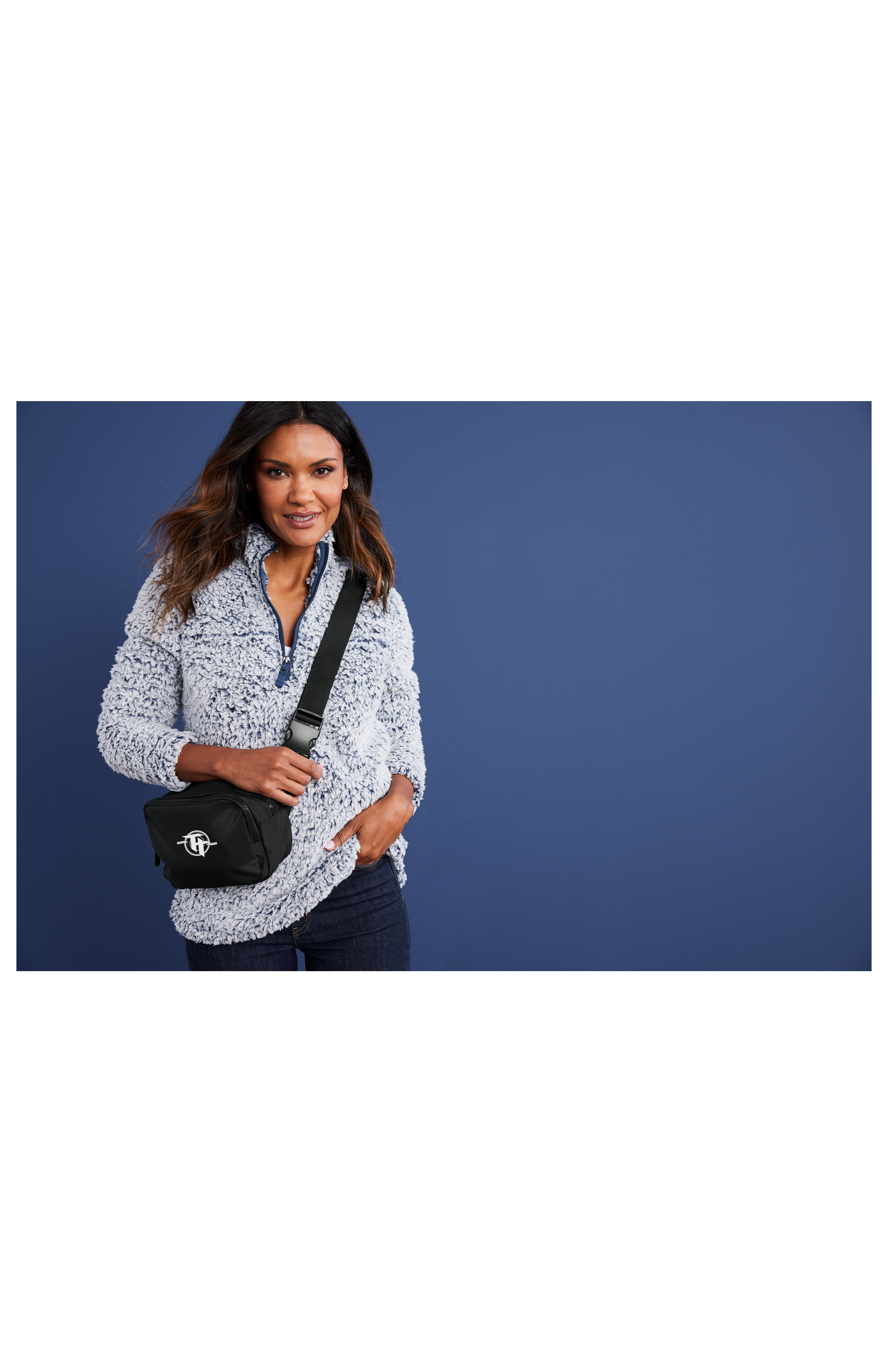 - Dyed-to-match adjustable shoulder strap with buckle